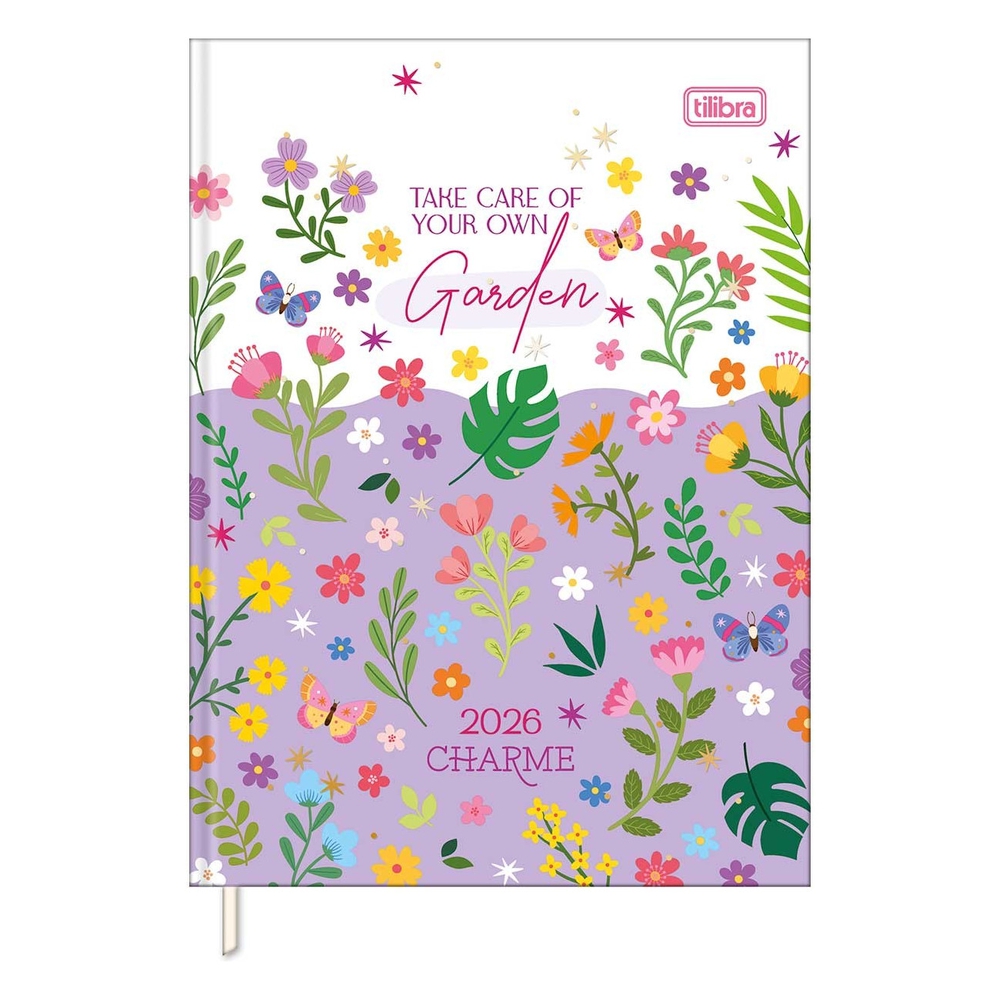 A Agenda Costurada Diária Charme 2026, da Tilibra, é perfeita para quem busca anotar seus compromissos, eventos, informações e diversas coisas do seu dia a dia de forma prática e organizada. Apresenta uma página por dia (exceto sábado e domingo) capa dura com aplicação metalizada, contracapa decorada, fitilho marcador de página, dados pessoais, folhas decoradas, anotações, e calendário 2026/2027. Para completar, apresenta uma adorável estampa de flores, tornando-a ainda mais bonita.