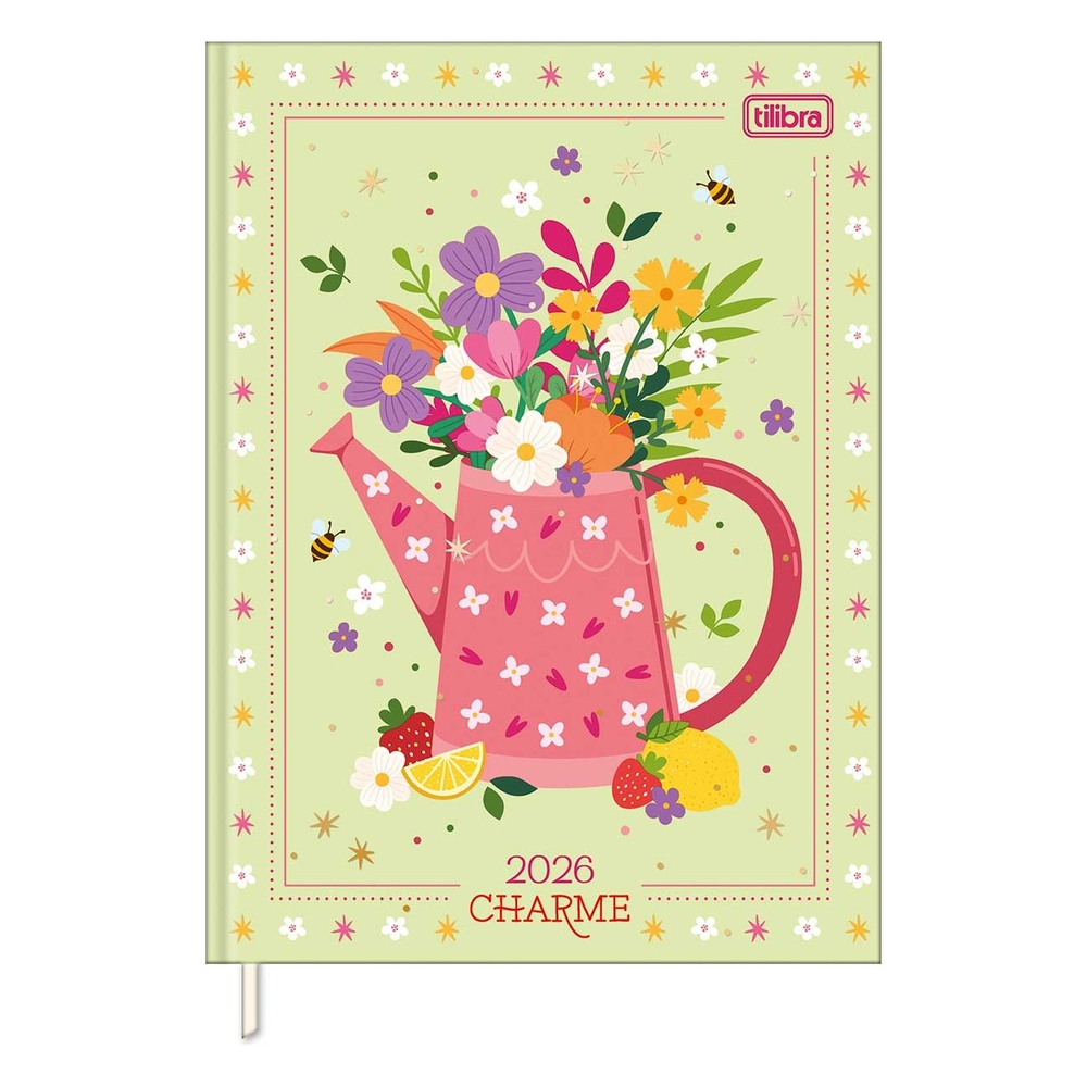 A Agenda Costurada Diária Charme 2026, da Tilibra, é perfeita para quem busca anotar seus compromissos, eventos, informações e diversas coisas do seu dia a dia de forma prática e organizada. Apresenta uma página por dia (exceto sábado e domingo) capa dura com aplicação metalizada, contracapa decorada, fitilho marcador de página, dados pessoais, folhas decoradas, anotações, e calendário 2026/2027. Para completar, apresenta uma adorável estampa de flores, tornando-a ainda mais bonita.