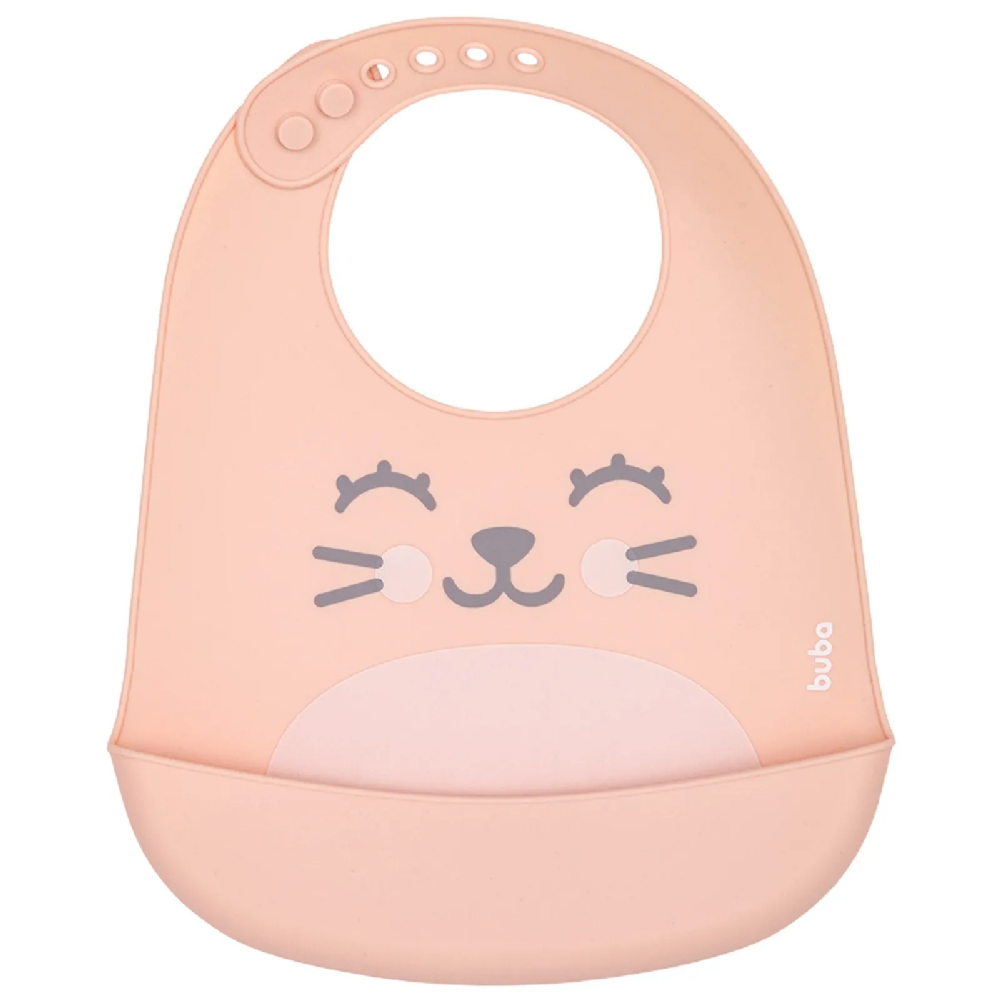 O Babador com Pega Migalhas Gumy não pode faltar na hora das refeições do seu bebê! Na cor rosa, ele tem desenho de um gatinho muito fofinho e super divertido, foi desenvolvido em silicone para maior praticidade na hora da limpeza e proteção para o bebê, pois evita molhar ou sujar a roupinha e/ou o ambiente, é muito fácil de limpar e possui fecho ajustável, perfeito para a introdução alimentar dos pequenos.