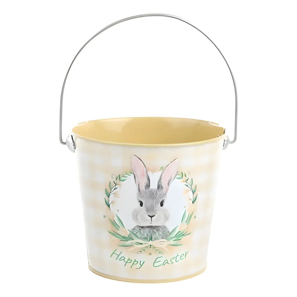 Balde em Metal Decorativo Redondo Páscoa - Amarelo - 13cm - Cromus