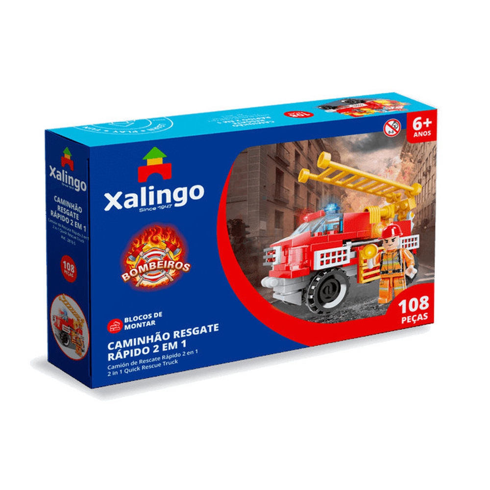Blocos de Montar Bombeiros Caminhão Resgate Rápido 2 em 1 - 108 Peças - Xalingo