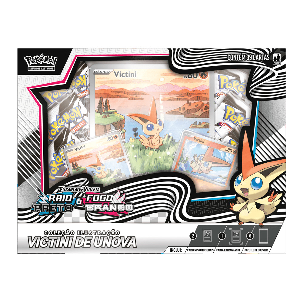 Mergulhe na nostalgia com a Box Coleção Victini do Pokémon Estampas Ilustradas! Esta box especial é essencial para jogadores e colecionadores, trazendo o Pokémon Mítico Victini para fortalecer seu baralho com sua energia infinita e capacidade de compartilhar a vitória. Inspirado nas expansões Escarlate e Violeta—Fogo Branco e Raio Preto, o conjunto reintroduz Pokémon icônicos de Unova. A Box é completa, oferecendo um total de 39 cartas, sendo 38 cartas no formato padrão, e uma carta extragrande, perfeita para exibição. Além das cartas especiais de Victini, a coleção inclui pacotes de booster das expansões Fogo Branco e Raio Preto em Português, garantindo um acréscimo de poder e exclusividade imediato ao seu jogo e à sua coleção.