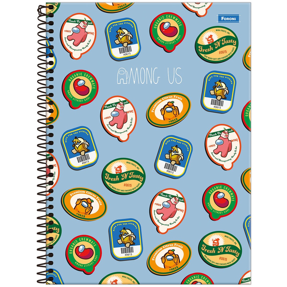 O caderno espiral universitário Among Us da Foroni possui capa dura com laminação fosca e verniz localizado, guarda decorada, bolsa plástica, adesivos e folhas decoradas. Ideal para o dia a dia na escola ou na faculdade.