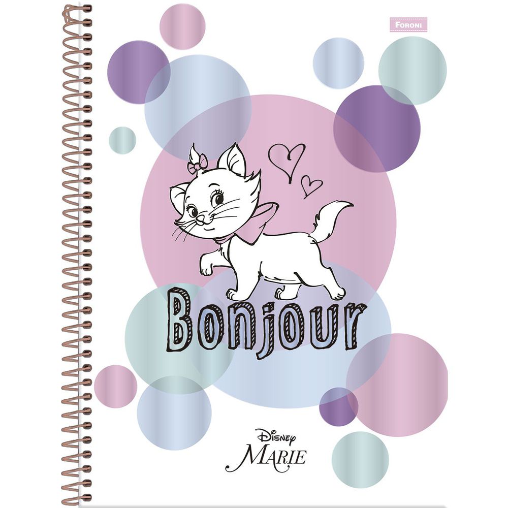 Caderno Disney Marie Metalizado - Bonjour - 80 Folhas - Foroni
