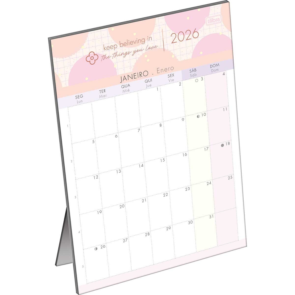 Com a gestão visual oferecida pelo Calendário Planner de Mesa Soho 2026, da Tilibra será bem mais fácil fazer uma organização objetiva, com menos chances de esquecimentos e falhas de comunicação que atrapalhem o andamento de qualquer atividade, seja em casa, na escola ou no trabalho. Se procura por um calendário planner de mesa com essas características, este é perfeito para você! O produto possui 12 folhas decoradas, no tamanho 138 x 190 mm, com visão mensal e espaço, no rodapé, para anotações e pequenas listas.