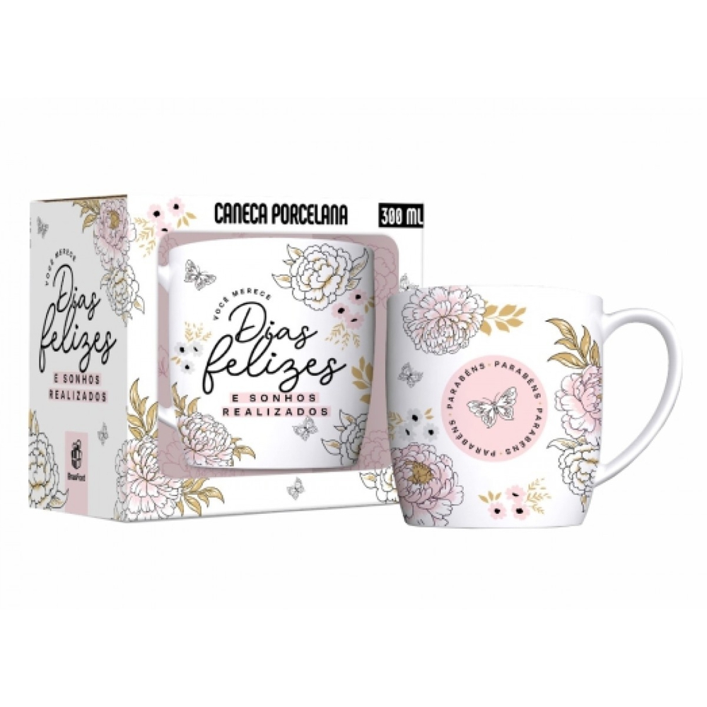 Caneca de Porcelana - Dias Felizes - 300ml - Brasfoot