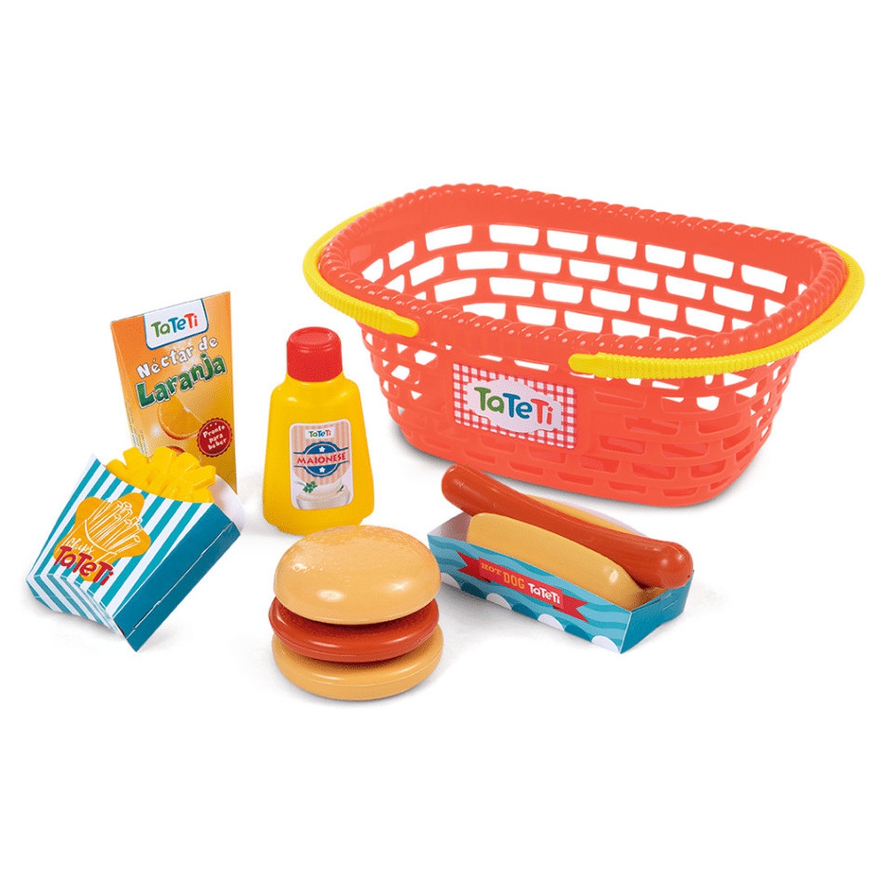 A Cesta Hora do Lanche é o acessório perfeito para transformar o faz de conta em um momento de pura diversão e aprendizado. Com um design charmoso e cores alegres, esta cestinha vem equipada com 1 cesta com alça, 1 caixinha de suco, 1 hambúrguer, 1 frasco de maionese, 1 porção de fritas com embalagem, 1 hot dog com embalagem que simulam um lanche completo, permitindo que as crianças criem histórias, desenvolvam habilidades e explorem a imaginação enquanto brincam de piquenique ou de casinha. Além de estimular a criatividade, o brinquedo auxilia no desenvolvimento da coordenação motora e na identificação de alimentos, tudo de forma muito lúdica, prática e resistente, a cesta possui uma alça ergonômica que facilita o transporte, permitindo que a brincadeira aconteça em qualquer lugar, garantindo entretenimento educativo e seguro para os pequenos chefs.