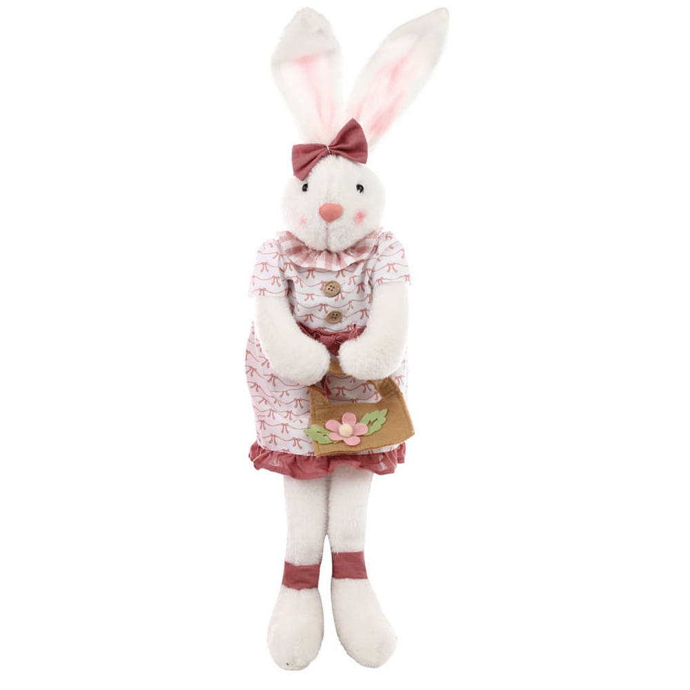 Coelho Decorativo de Páscoa Em Tecido - Coelha Vestido - 65cm - Cromus