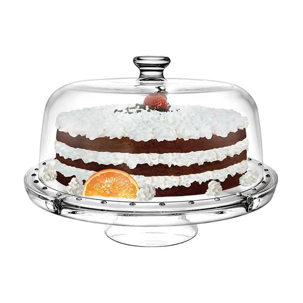 O conjunto para servir em vidro Mônaco 5 em 1 da linha Klassikglas, oferece diferentes formas de uso em cozinhas, mesas e eventos. Pode ser usada como suporte para bolo em aniversários, almoços, cafés da manhã ou jantares. Também serve como base para tortas, pães, quiches, frutas ou queijos. A tampa ajuda no transporte e na conservação dos alimentos.