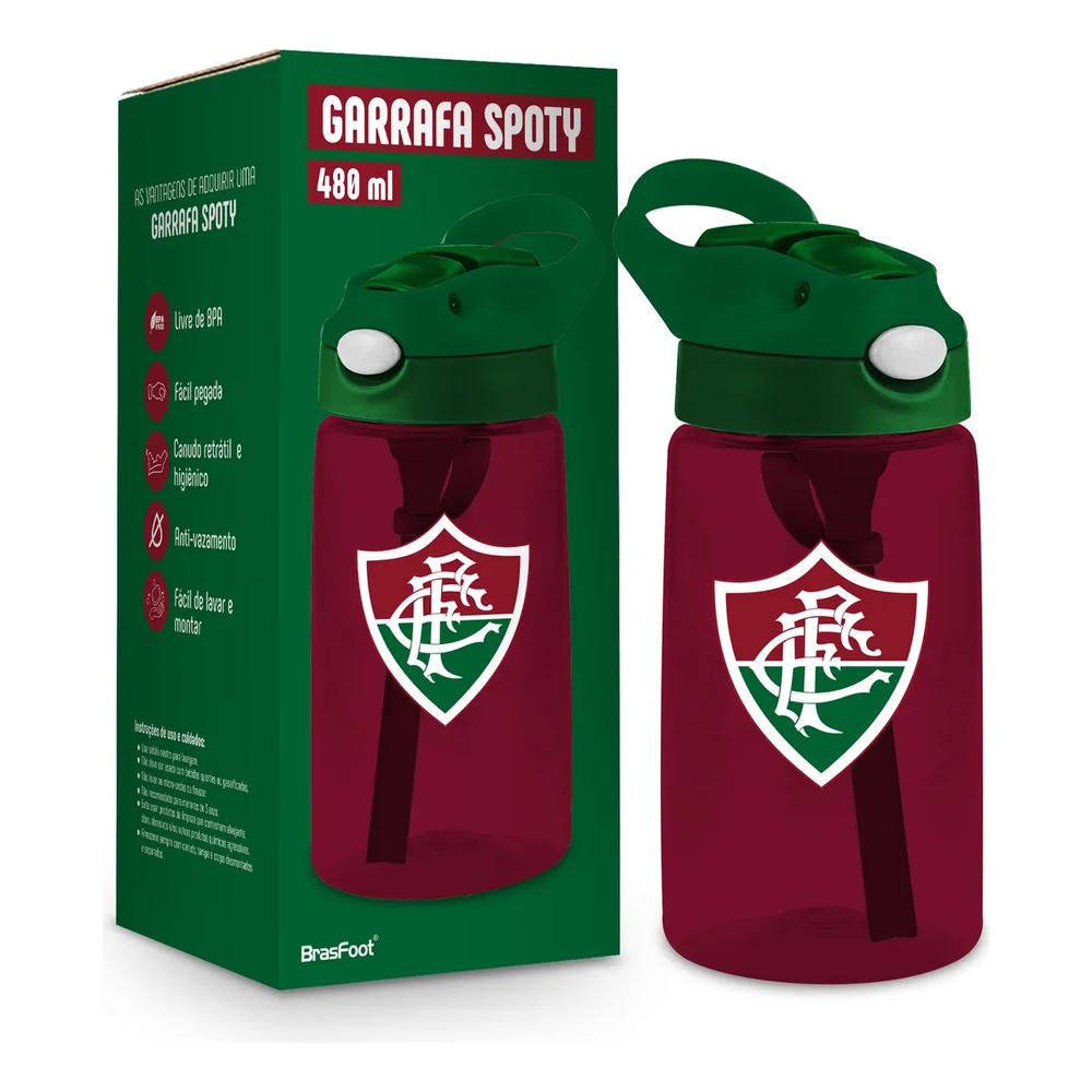 A Garrafa Spoty Fluminense, da Brasfoot é fabricada em plástico de alta qualidade para garantir durabilidade e resistência no dia a dia.