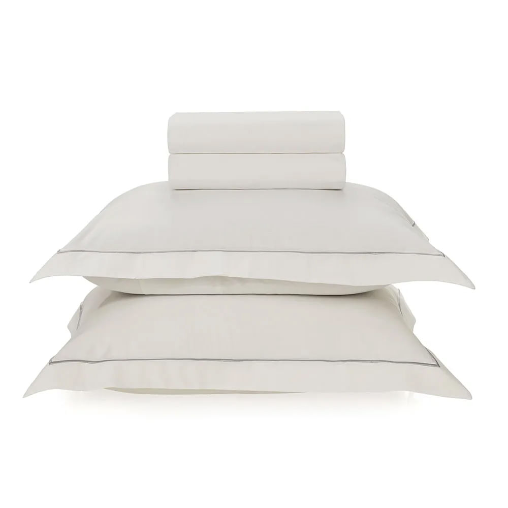 Minimalista e elegante, o jogo de cama Deliz se destaca pelo bordado em ponto royal nas fronhas, com design clean, oferece versatilidade para composições diversas. É perfeito para quem prefere uma cama mais clean, ou mesmo para quem procura por uma base de construções mais elaboradas. Produzido em 200 fios de algodão 100% brasileiro, é um jogo de cama encorpado, macio e altamente respirável.