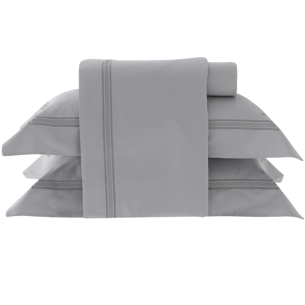 Jogo de Cama 300 Fios Bordado Lusitani Queen - Prata - Kacyumara