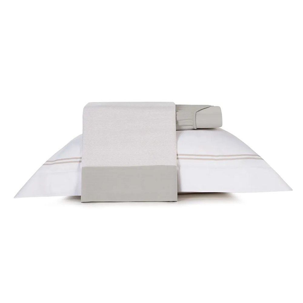 As peças são confeccionadas em tecido 100% algodão 200 fios de altíssima qualidade, proporcionando um toque macio, confortável e muito elegante aos ambientes. Sua maciez oferece ótimo acabamento e caimento, apresentando uma estampa de listras em tons claros de bege, cinza e branco que o torna ainda mais bonito, podendo ser usado com a elegância da dobra feita de 50cm. O item perfeito para seu bem estar, proporcionando deliciosas horas de descanso e embelezando ainda mais sua cama!