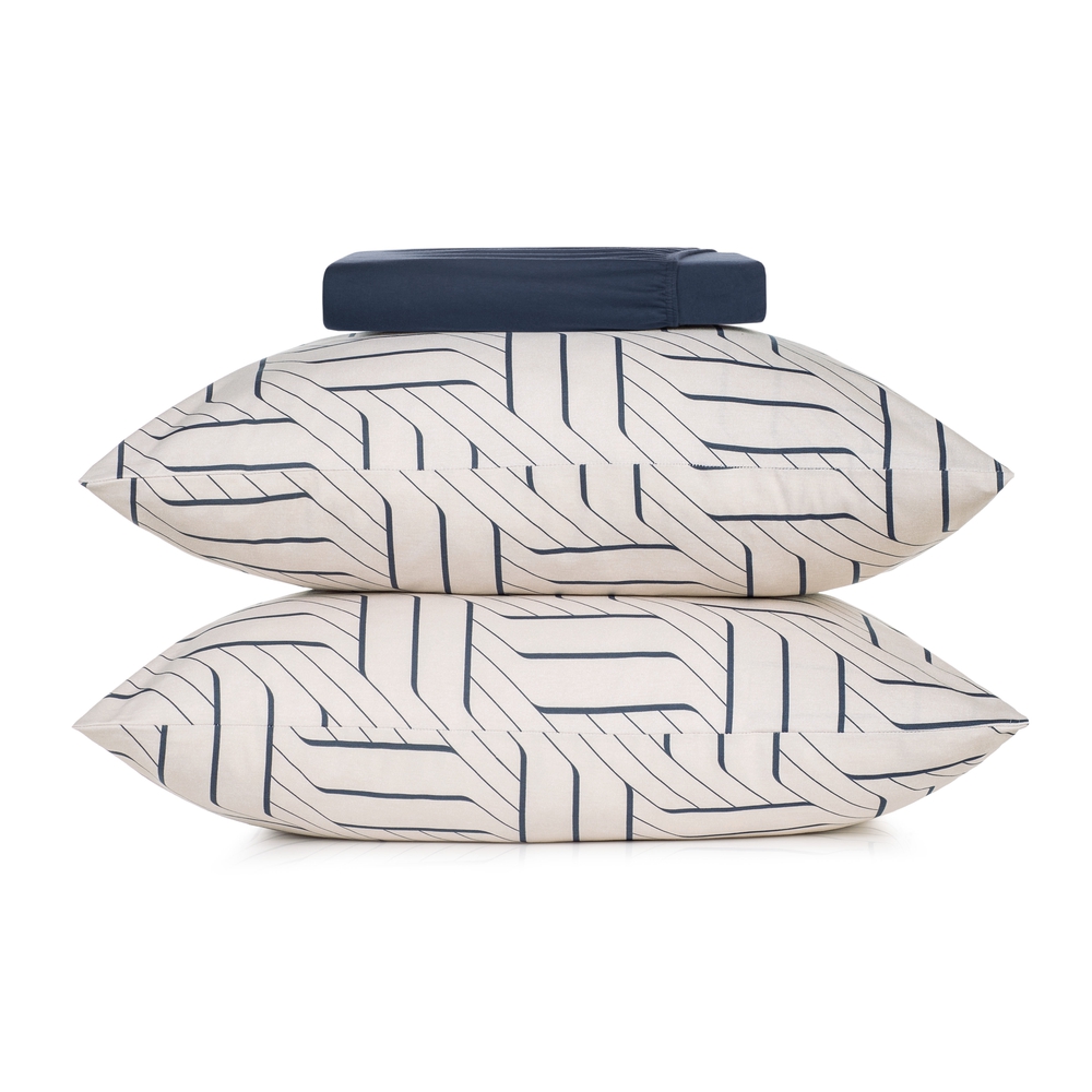 Feito com 100% algodão de fio penteado, este conjunto oferece uma suavidade excepcional e durabilidade superior, proporcionando uma sensação de aconchego incomparável. A estampa Zigue conta com visual geométrico contemporâneo, que valoriza a decoração do quarto, enquanto a malha de algodão garante conforto térmico em todas as estações.