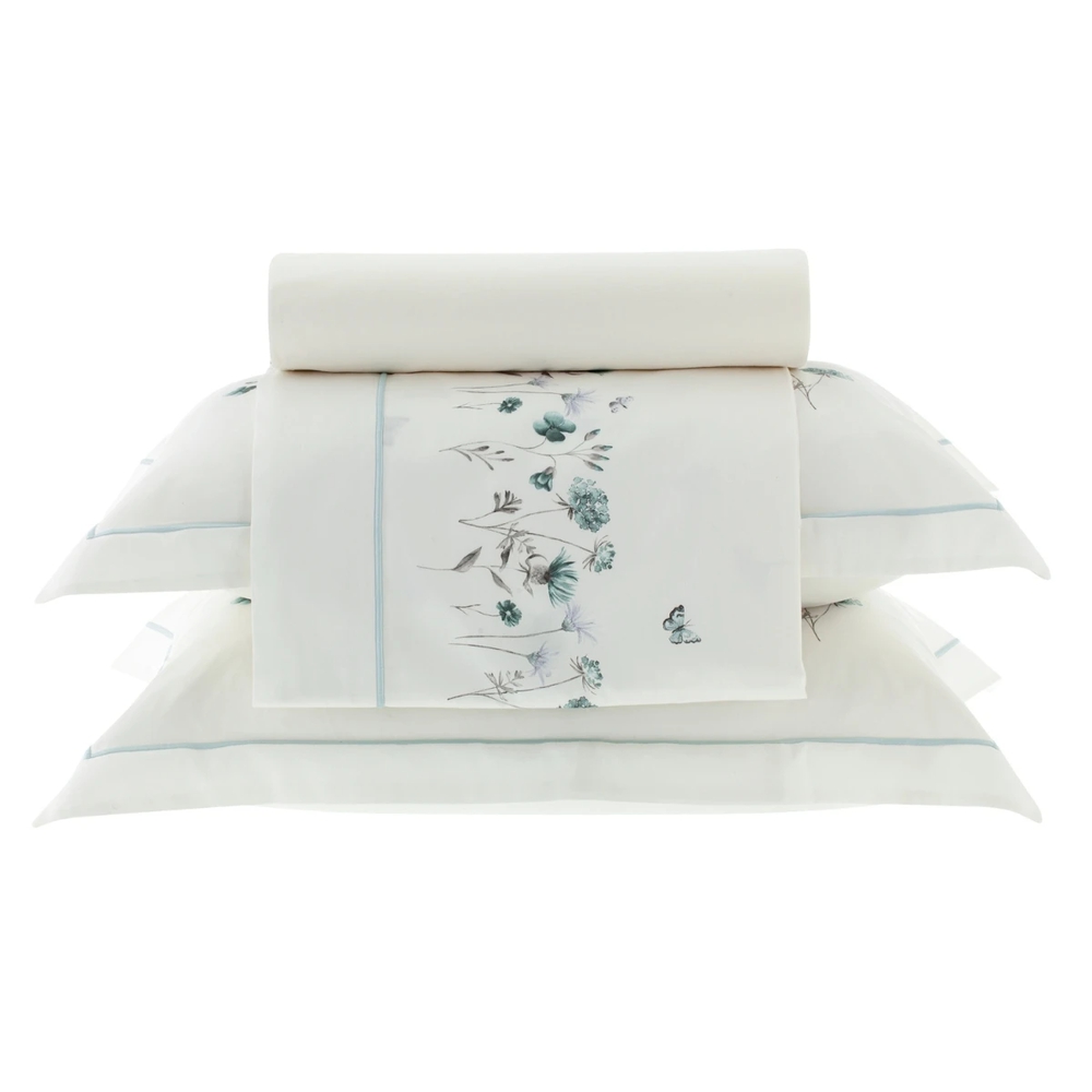Contém: 1 lençol plano, 1 lençol com elástico e 2 fronhas