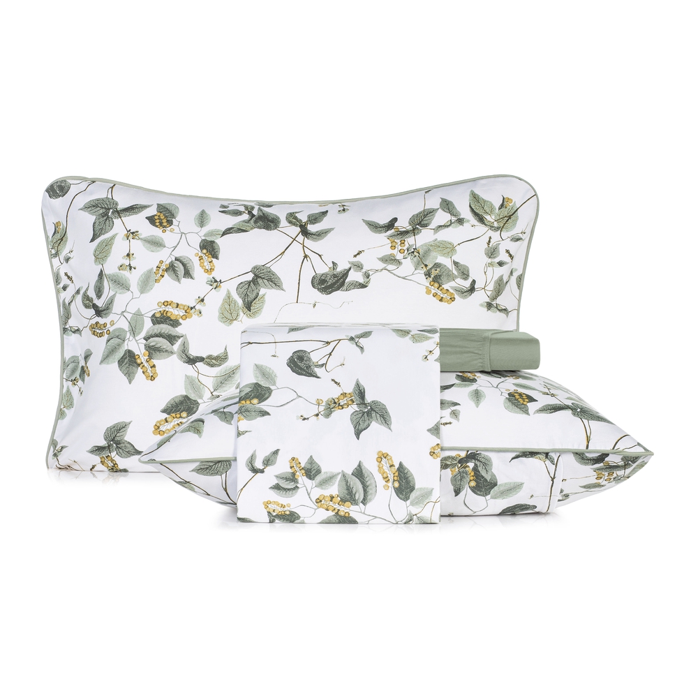 Contém: 1 sobre lençol, 1 lençol com elástico e 2 fronhas