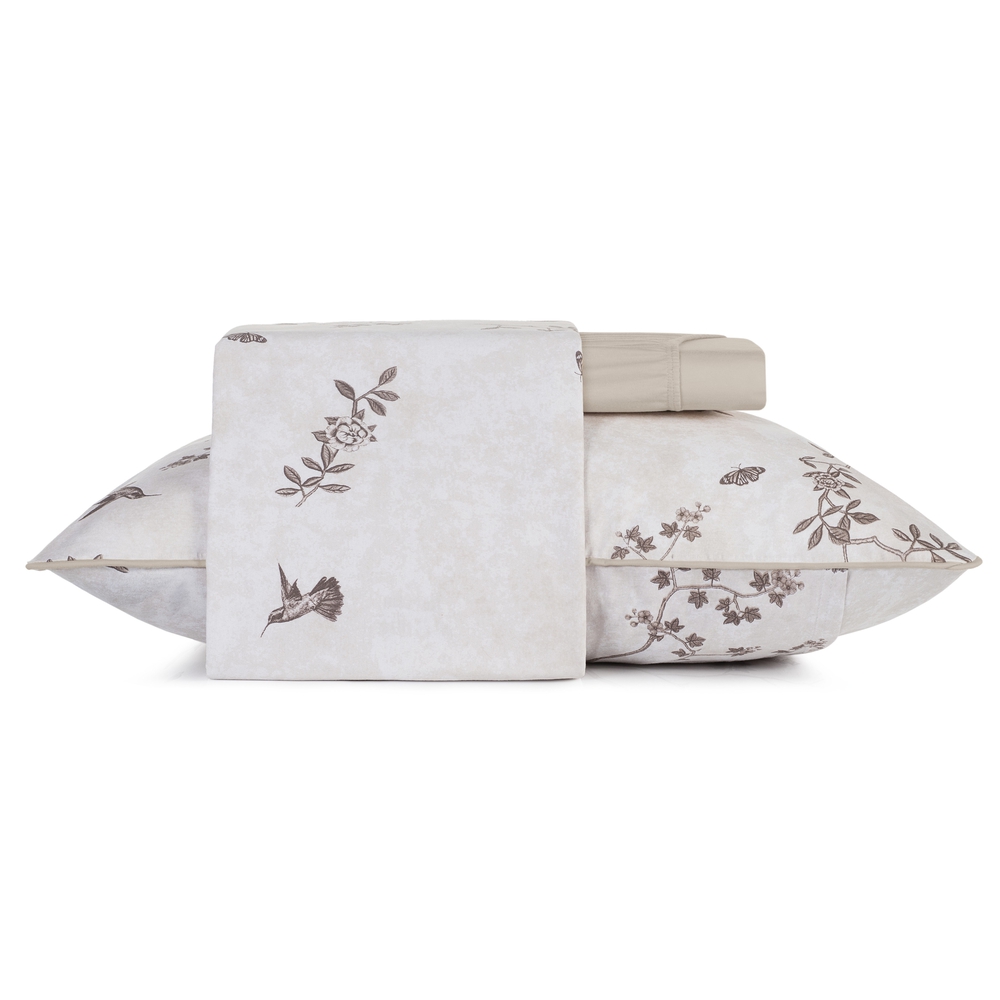 A estampa Paradis Composê traz delicadeza e elegância para o quarto com desenhos de pássaros e folhagens em tons sutis sobre o fundo bege mocha. Confeccionada com enchimento em poliéster thermobonder macio e leve, garante conforto e praticidade no dia a dia. Versátil e super aconchegante, é prática e combina com qualquer estação e estilo de decoração.