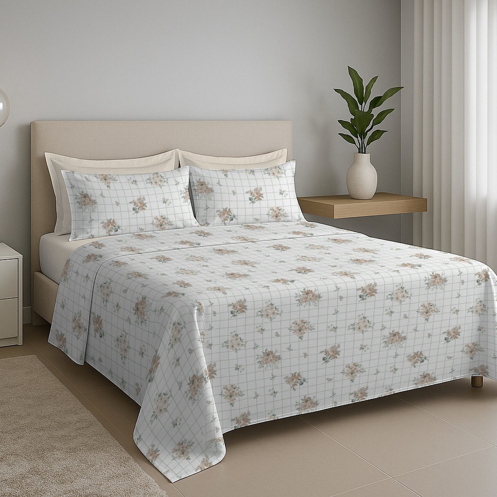 Jogo de Cama Premium Queen - Grid Floral - 150 Fios - Estamparia