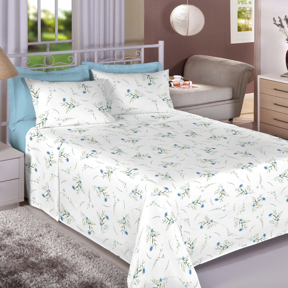 Jogo de Cama Premium Queen Ramo Azul - 150 Fios - Estamparia