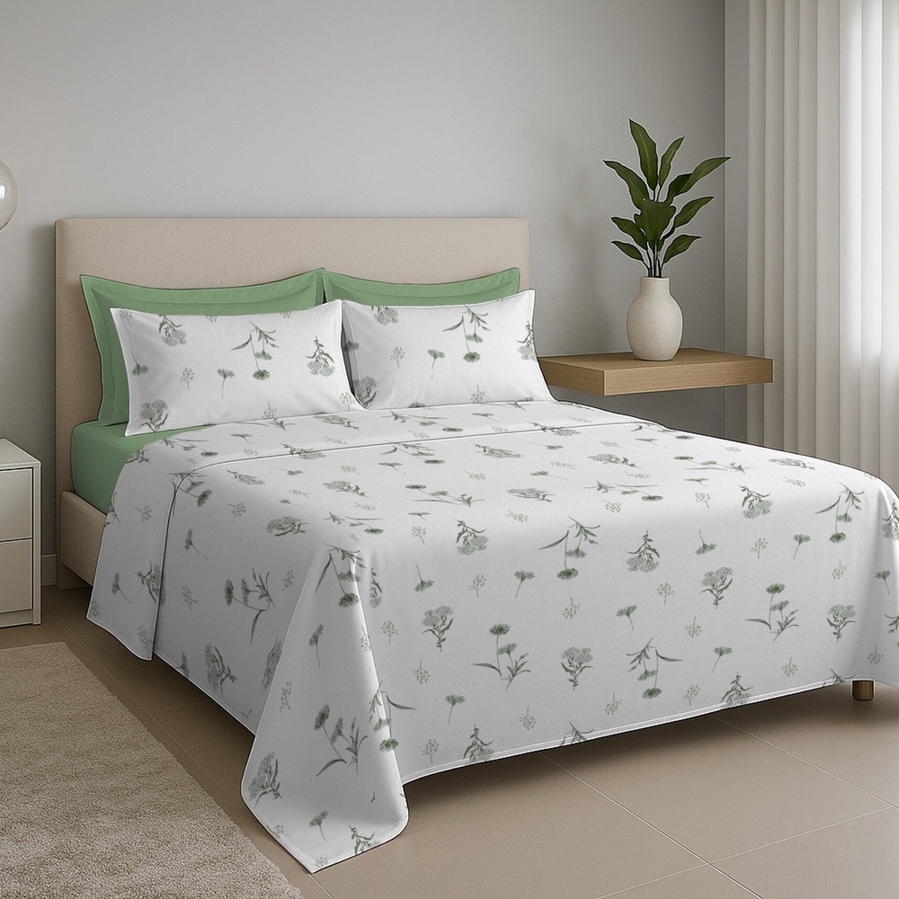 Jogo de Cama Premium Solteiro - Floral Verde - 150 Fios - Estamparia