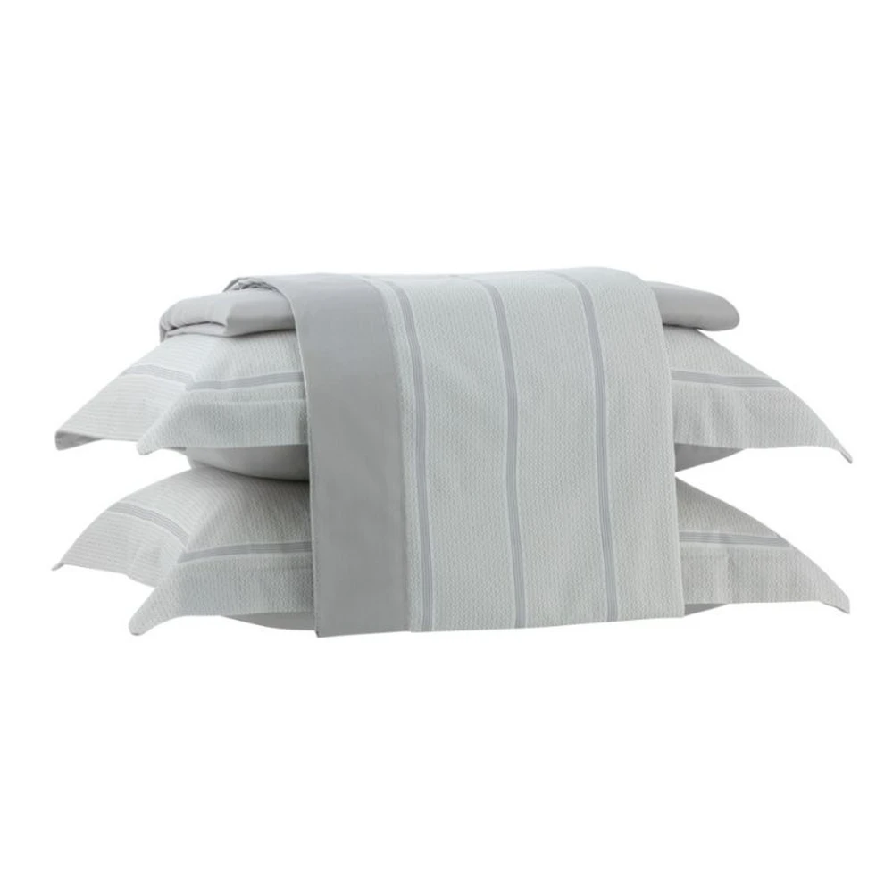 O Jogo de Cama Satinee Acetinado Linus, da Kacyumara é elaborado em tecido 100% algodão percal 300 fios, desenvolvido pensando no seu conforto e garantindo um toque extremamente macio e suave, proporcionando muita tranquilidade nas horas de descanso. O jogo é composto por um lençol plano com vira, um lençol com elástico e duas fronhas com abas. Apresenta uma estampa com listras super discreta e delicada, que deixará o quarto muito mais bonito, moderno e sofisticado. Composta por um tecido de 300 fios, essa coleção oferece uma textura extremamente macia e suave ao toque, ideal para quem busca elegância e uma sensação única de bem-estar, proporcionando maior resistência e qualidade. A Linha Satinée é uma escolha perfeita para quem deseja unir sofisticação, conforto e durabilidade no enxoval.
