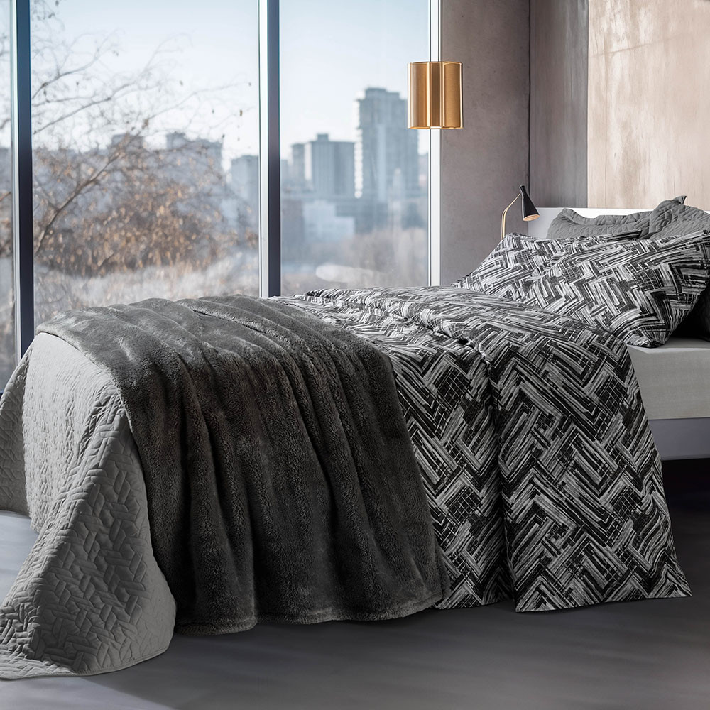Jogo de Cama Solteiro 3 Peças Home Design 200 Fios - Geométrico Cinza - Corttex