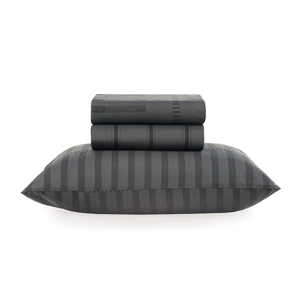 O Jogo de Cama Solteiro Tales, da Karsten traz uma estética contemporânea e equilibrada, marcada por listras sutis em tons grafite e preto que criam profundidade visual e elegância discreta para o quarto. A estampa conversa com diferentes estilos de decoração, do mais urbano ao minimalista, enquanto o toque macio do tecido em algodão proporciona uma sensação acolhedora desde o primeiro contato. É aquele tipo de jogo de cama que transforma a rotina e deixa a cama sempre com aparência bem cuidada, convidando ao descanso.