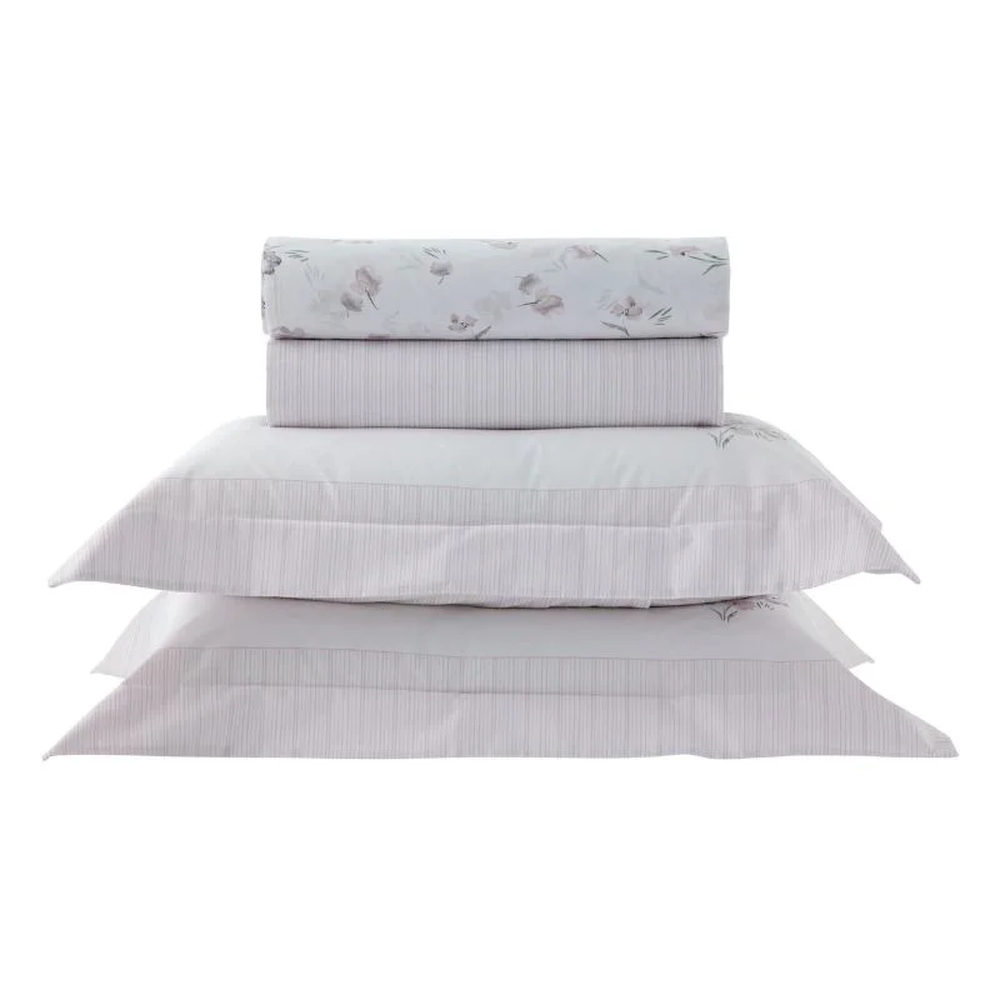 Embalagem: 1 lençol, 1 lençol com elástico, 2 fronhas