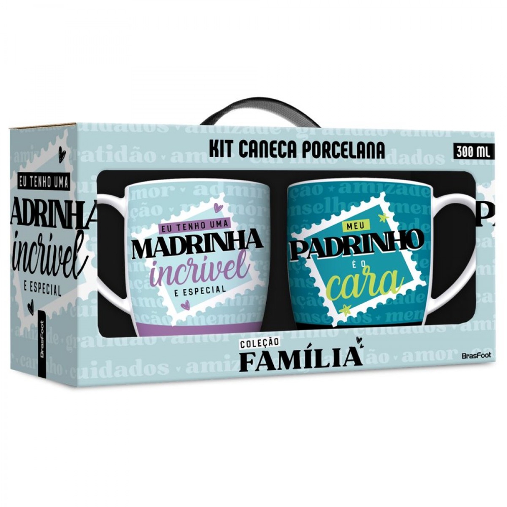 O Jogo de Canecas Padrinhos Incríveis, da Brasfoot, é fabricado em porcelana de alta qualidade para garantir durabilidade e resistência durante seu uso.