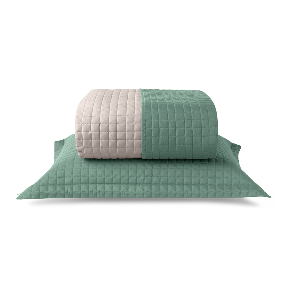Jogo de Colcha Dupla Face Plaza Queen - Verde Floresta/Bege - Lavive