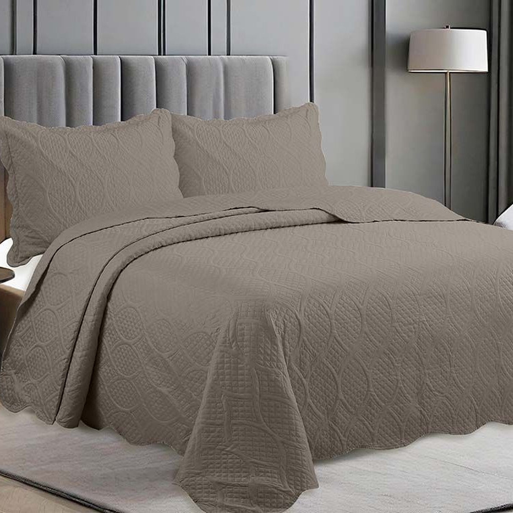 Confeccionada em microfibra (100% poliéster), oferece toque macio, leveza e fácil manutenção. O acabamento matelassado em relevo valoriza a textura do tecido e compõe a cama com elegância, enquanto a secagem rápida e a resistência do material facilitam a rotina. O jogo é composto por três peças: uma colcha e dois porta travesseiros, todos com acabamentos de alta qualidade e na cor chumbo.