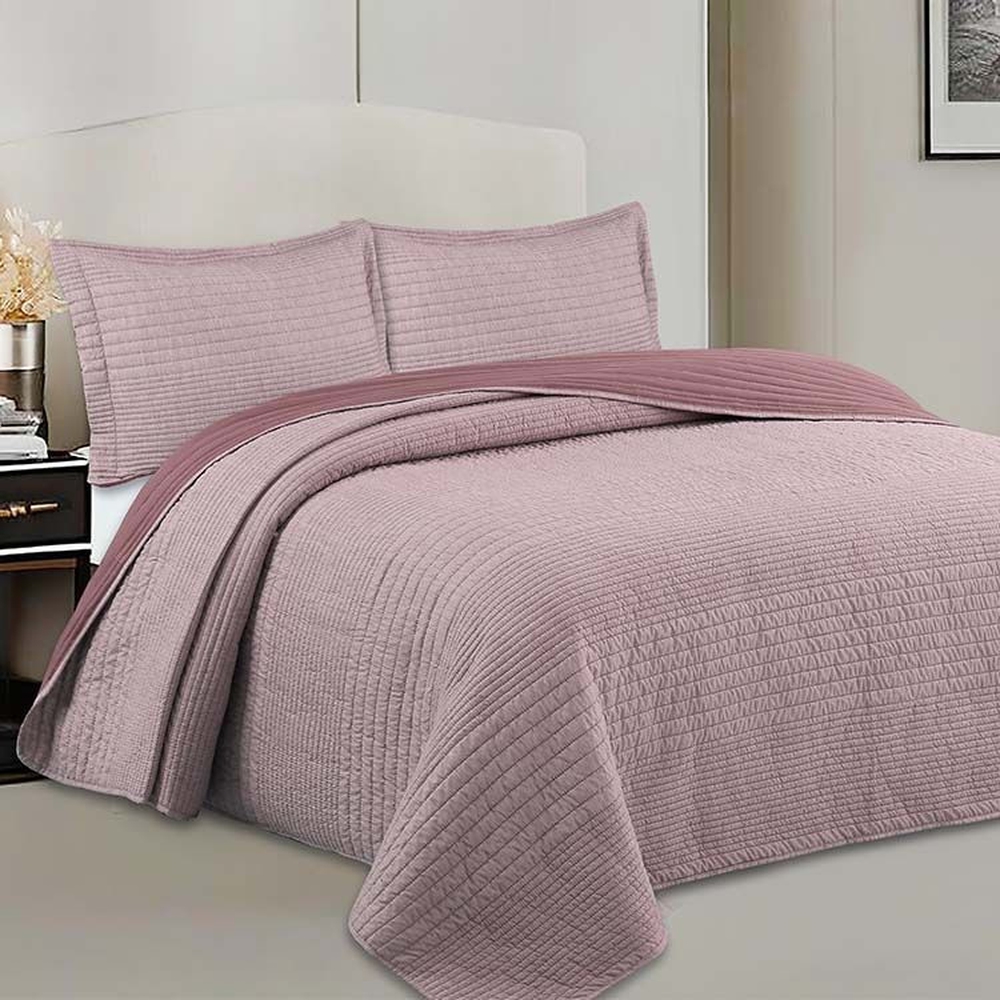 Confeccionada em microfibra (100% poliéster), oferece toque macio, leveza e fácil manutenção. O acabamento matelassado em relevo valoriza a textura do tecido e compõe a cama com elegância, enquanto a secagem rápida e a resistência do material facilitam a rotina. O jogo é composto por duas peças: uma colcha e um porta travesseiro, todos com acabamentos de alta qualidade e na cor rose.