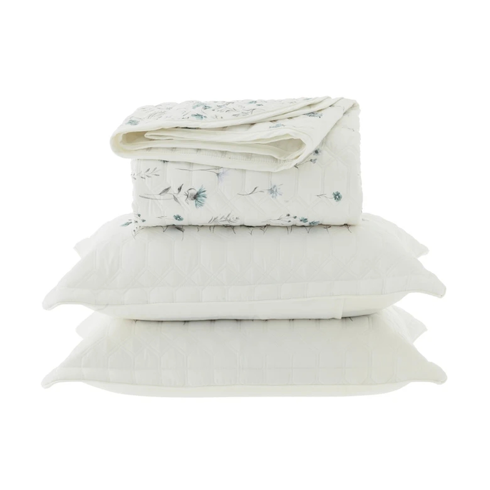 Com o Jogo de Colcha Niel da Linha Lazio você irá transformar seu quarto em um ambiente confortável e aconchegante. Confeccionado com tecido de excelente qualidade de 300 fios, possui um lindo acabamento com toque acetinado. Perfeito para os mais diversos cenários e estilos de decoração, sua estampa delicada de ramos sutis em tom de verde e branco, cria um ambiente sereno e sofisticado.