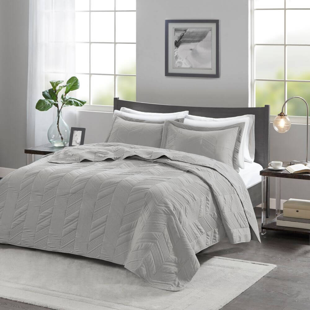 Jogo de Colcha Ouro 300 Fios Living Art - Super King - Cinza - Corttex