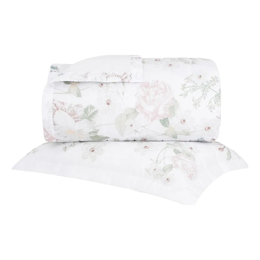 Este conjunto oferece a combinação perfeita entre design elegante e a incomparável maciez de 180 fios em tecido Gran Percal, com acabamento de excelente qualidade e toque extremamente macio, proporciona uma sensação aconchegante e uma experiência de sono revitalizante. Inspirada na pureza e delicadeza das flores, Hédera remete a sensações de calma e serenidade. A colcha matelassada, possui flores e folhas em tons sombreados de azul e verde, que compõem uma atmosfera fresca e orgânica trazendo refinamento e sofisticação. Em 180 fios de puro algodão, o modelo possui toque ultra macio e aconchegante, muito agradável de sentir. A Buddemeyer é referência em qualidade e estilo.