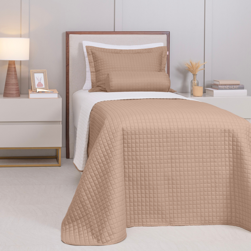 Jogo de Colcha Plaza Dupla Face - Solteiro - Amendoa/Palha - 02 Peças - Lavive