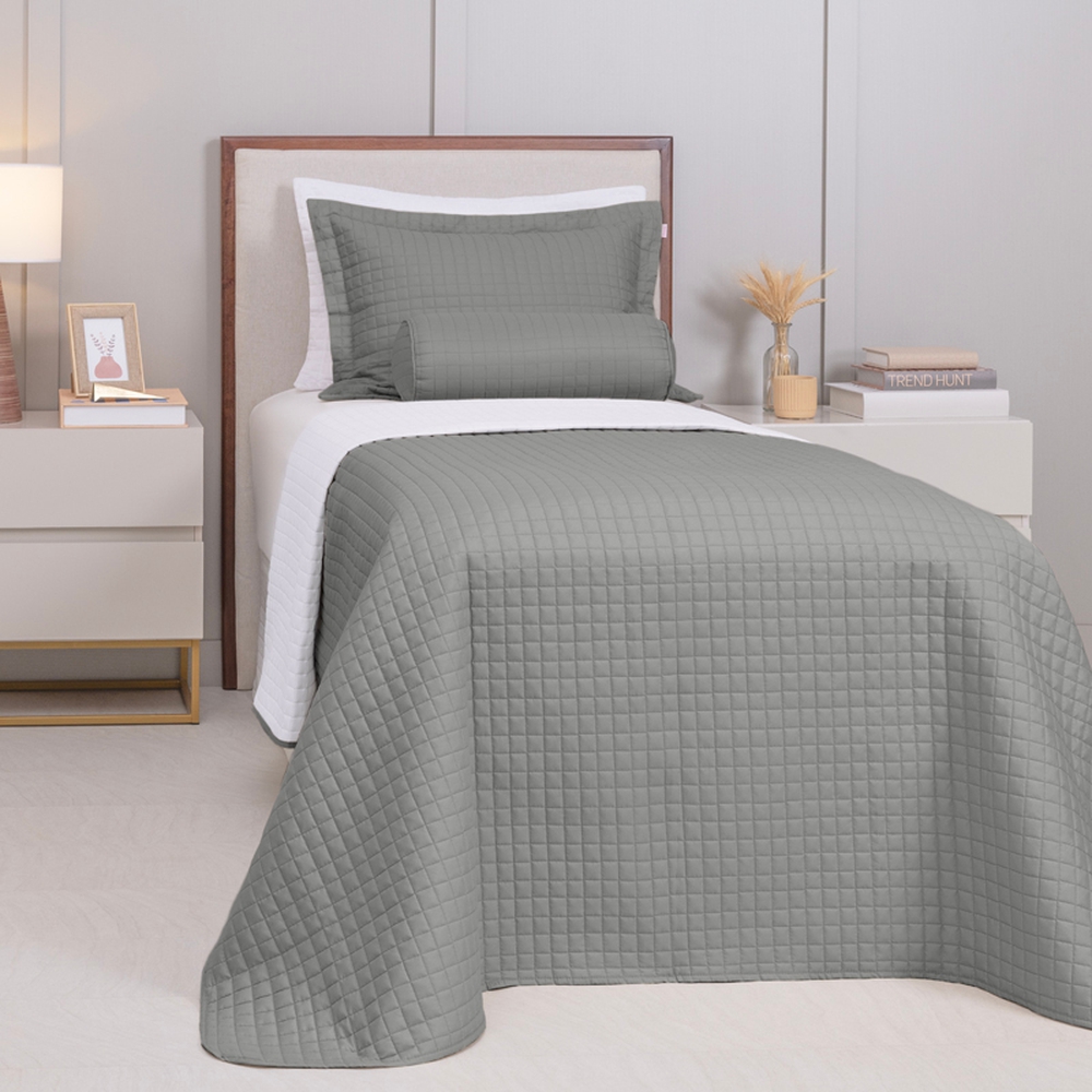 Jogo de Colcha Plaza Dupla Face - Solteiro - Gris/Branco - 02 Peças - Lavive
