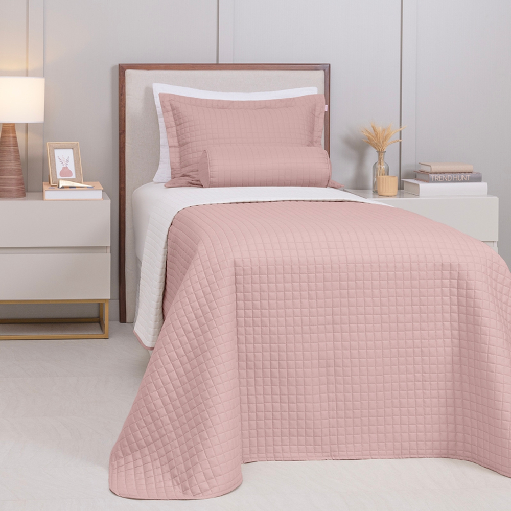 Jogo de Colcha Plaza Dupla Face - Solteiro - Rose/Palha - 02 Peças - Lavive