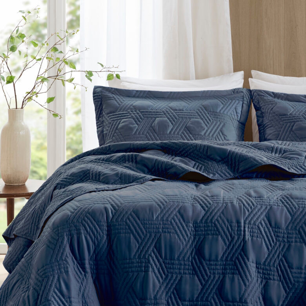 Jogo de Colcha Prisma - Super King - Azul - Corttex