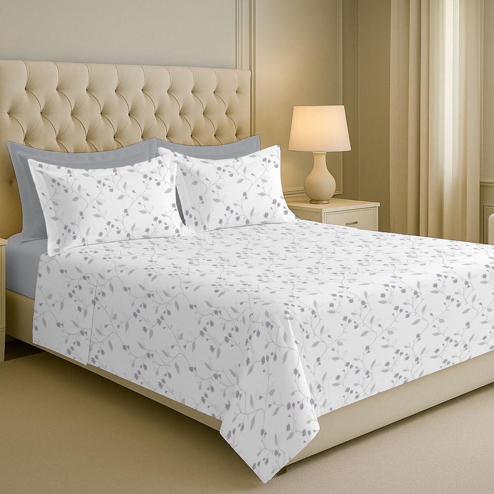 Jogo de Lençol Trésor 300 Fios Solteiro - Flores Lilás - 3 Peças - Estamparia