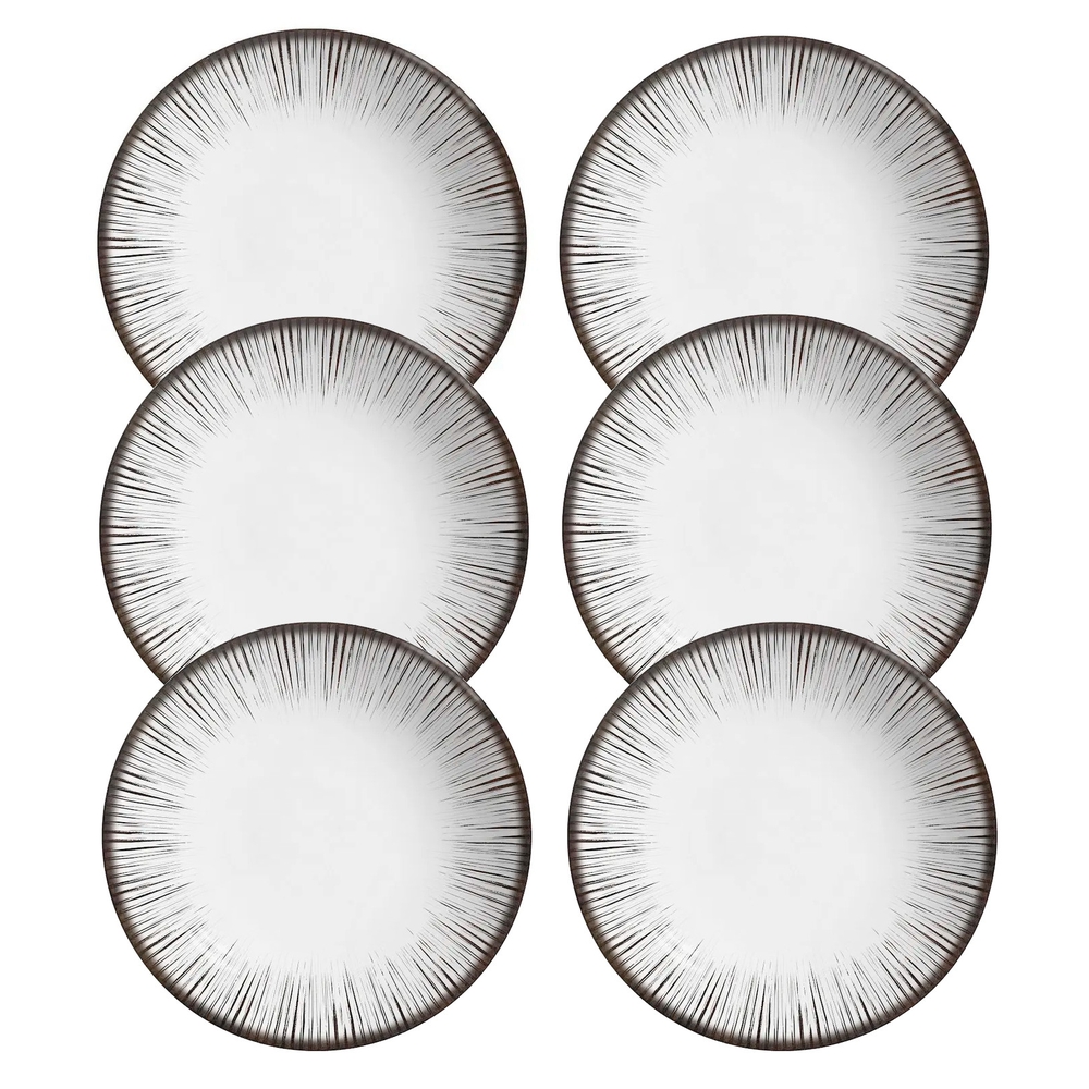 O Jogo de Pratos Fundos Coup Haya, da Alleanza é um conjunto de seis peças que combina a funcionalidade moderna com um design clean e minimalista, perfeito para servir familiares e amigos com elegância. Os pratos são apresentados no formato Coup, caracterizado por suas bordas suaves e ausência de abas, maximizando a área de servir. A coleção Haya possui o fundo branco combinado com os riscos pretos, garantindo uma mesa harmoniosa e coesa.