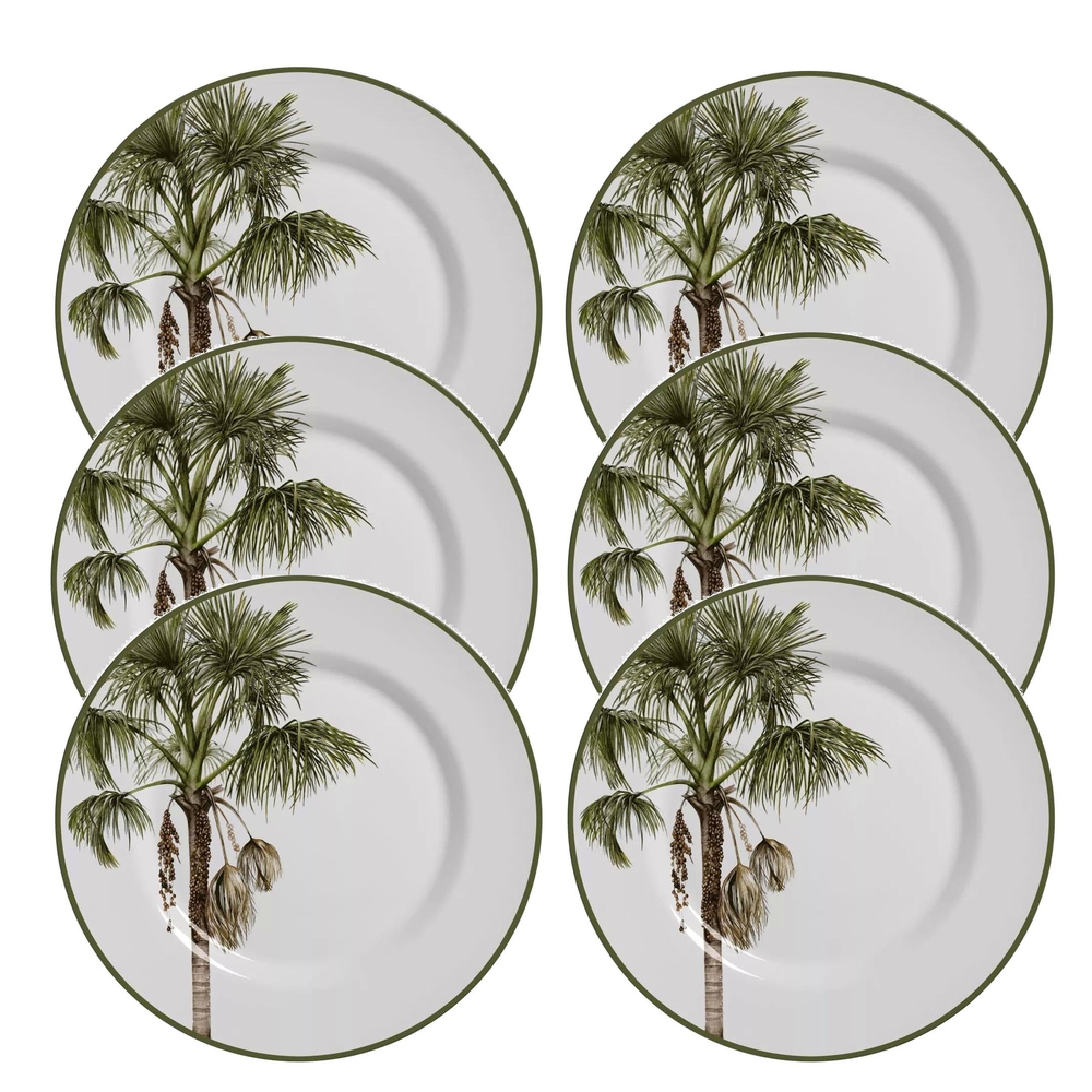 O Jogo de Pratos Rasos Malibu, da Alleanza é um conjunto de seis peças que combina funcionalidade com um design romântico. Perfeitos para quem busca unir estilo e praticidade no dia a dia, esses pratos trazem um design exclusivo com palmeiras que adicionam um toque alegre e sofisticado à sua mesa.