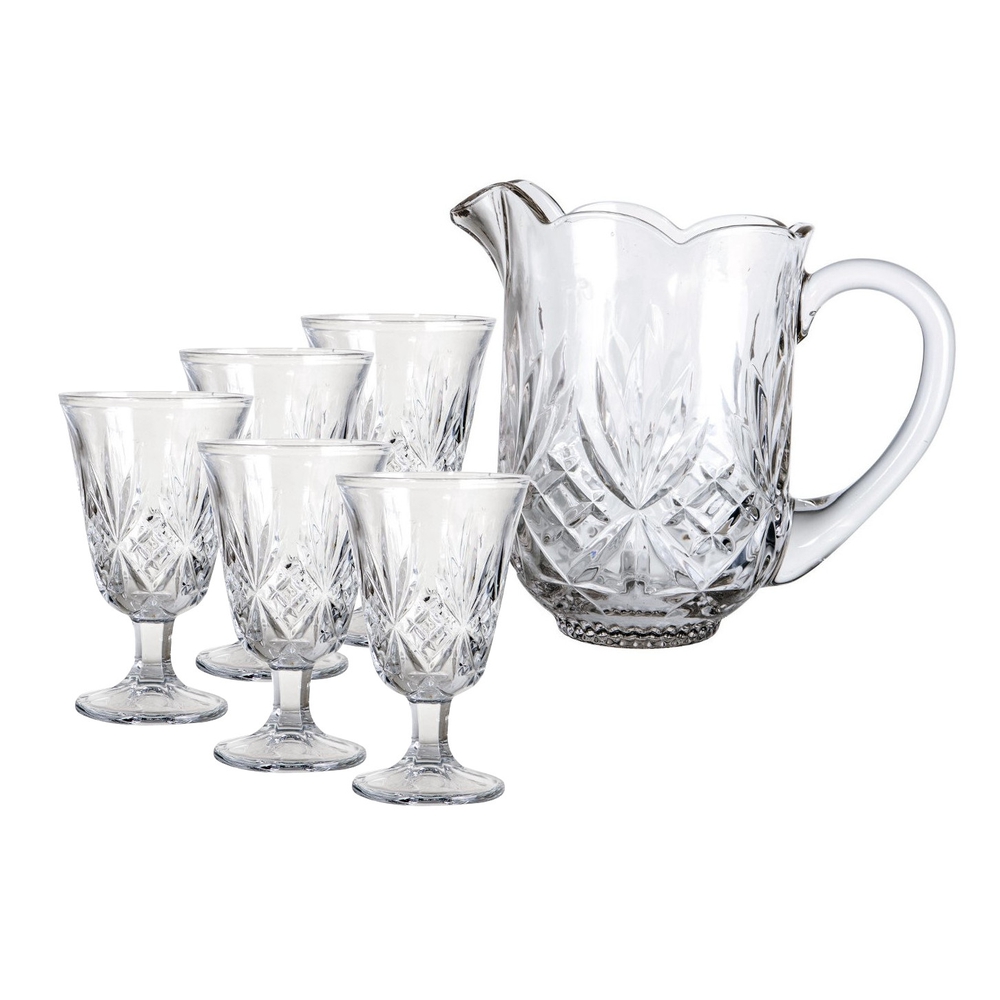 O Jogo de Refresco Ice da L'Hermitage combina perfeitamente funcionalidade e design sofisticado, sendo ideal para servir com elegância sucos, águas aromatizadas e outras bebidas refrescantes. Composto por uma jarra de 1,3 Litros e seis taças de 235ml, este conjunto de 7 peças possui um design clássico que se adapta a qualquer decoração.