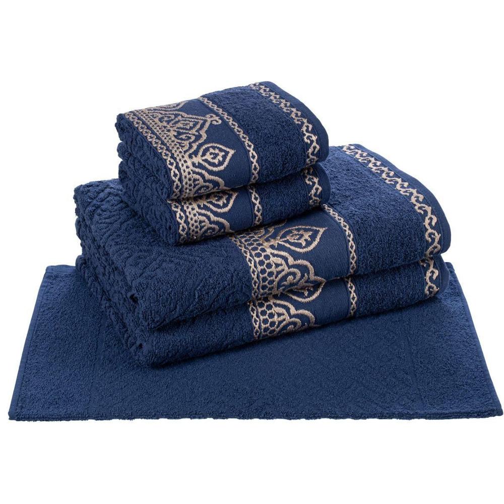 Jogo de Toalhas de Banho Barroca - Marinho - 5 Peças - Caviquioli