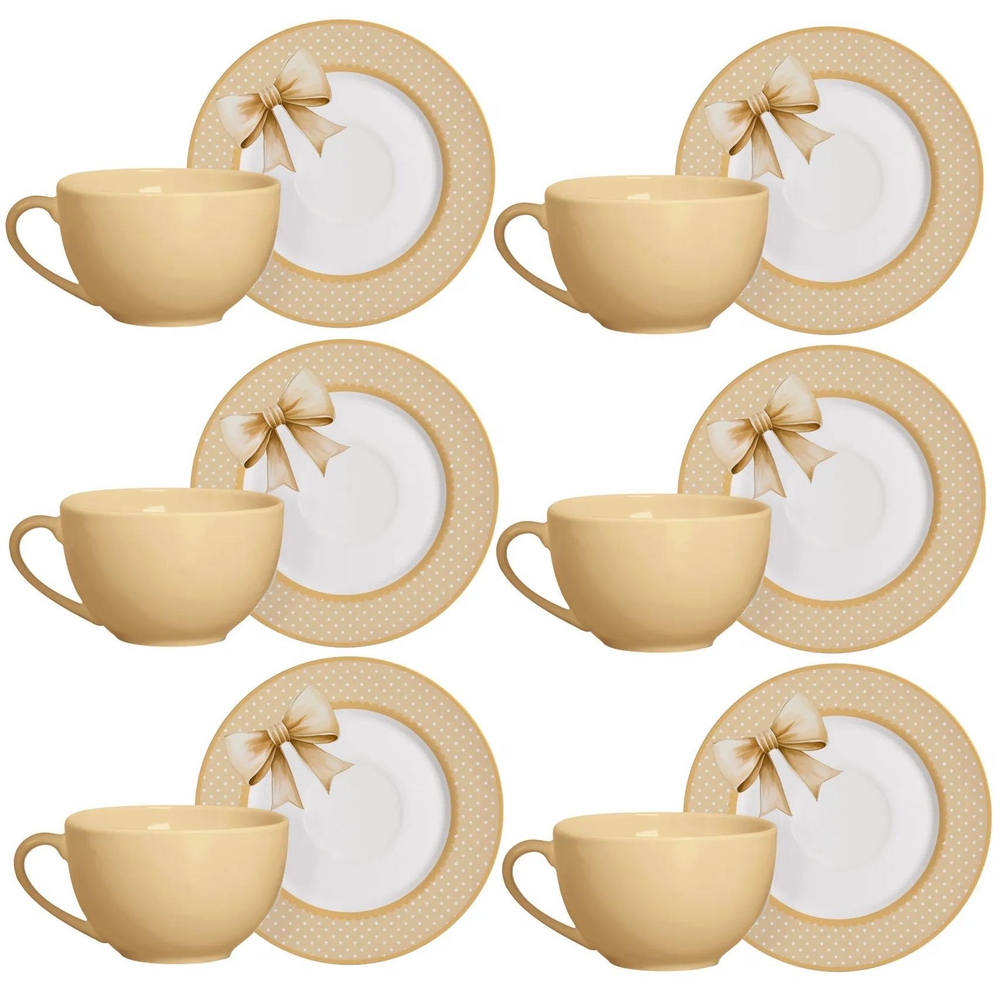 O Jogo de Xícaras de Chá Laços de Páscoa Amarelo, da Alleanza combina sofisticação e delicadeza para compor sua mesa posta. Produzido em cerâmica feldspática, o conjunto de chá é composto por 12 peças, 6 xícaras de 250 ml e 6 pires, que podem ser levados ao micro-ondas e à máquina de lavar louças.