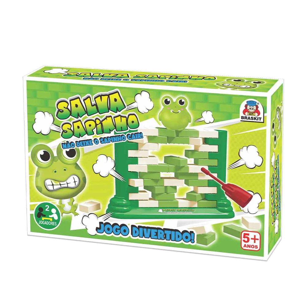 O Jogo Salva Sapinho, da Braskit garante muita diversão, sendo um emocionante desafio de ação e precisão que prende a atenção de crianças e adultos. Além de ser altamente divertido, ele desenvolve habilidade e estratégia, pois requer concentração, coordenação motora fina e raciocínio para escolher o bloco certo a ser retirado. É o passa tempo ideal para toda a família, permitindo a participação de dois jogadores e promovendo momentos de união e muitas risadas!