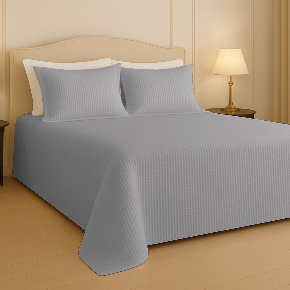 Kit Colcha Dream Piquet King - Cinza - 3 Peças - Estamparia