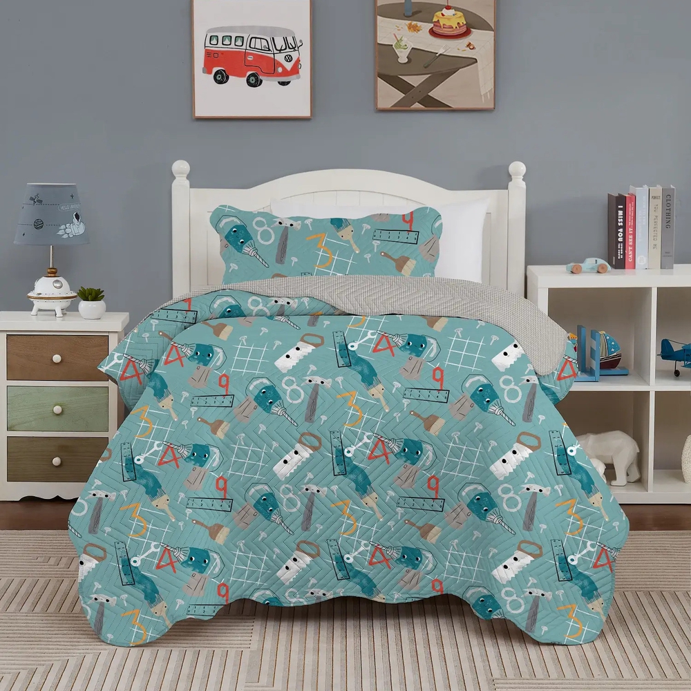 Kit Colcha Studio Mix Kids - Solteiro - Ferramentas - 2 Peças - Corttex