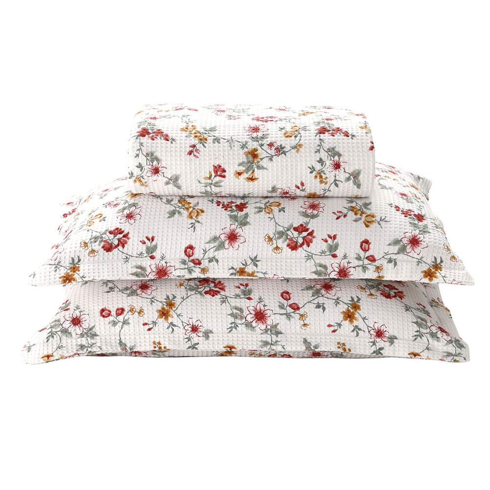 Embalagem: 1 colcha e 2 porta travesseiros.