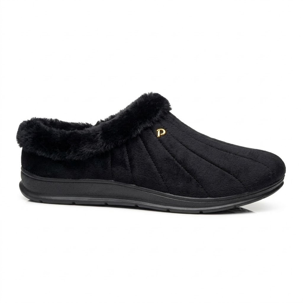Confeccionada com material têxtil de toque aveludado e um luxuoso forro em pelúcia que envolve todo o pé, ela garante um caminhar macio e extremamente aconchegante. Seu solado anatômico e antiderrapante oferece a segurança e a durabilidade características da marca Pegada, tornando-a perfeita para momentos de descanso ou home office com elegância e praticidade.